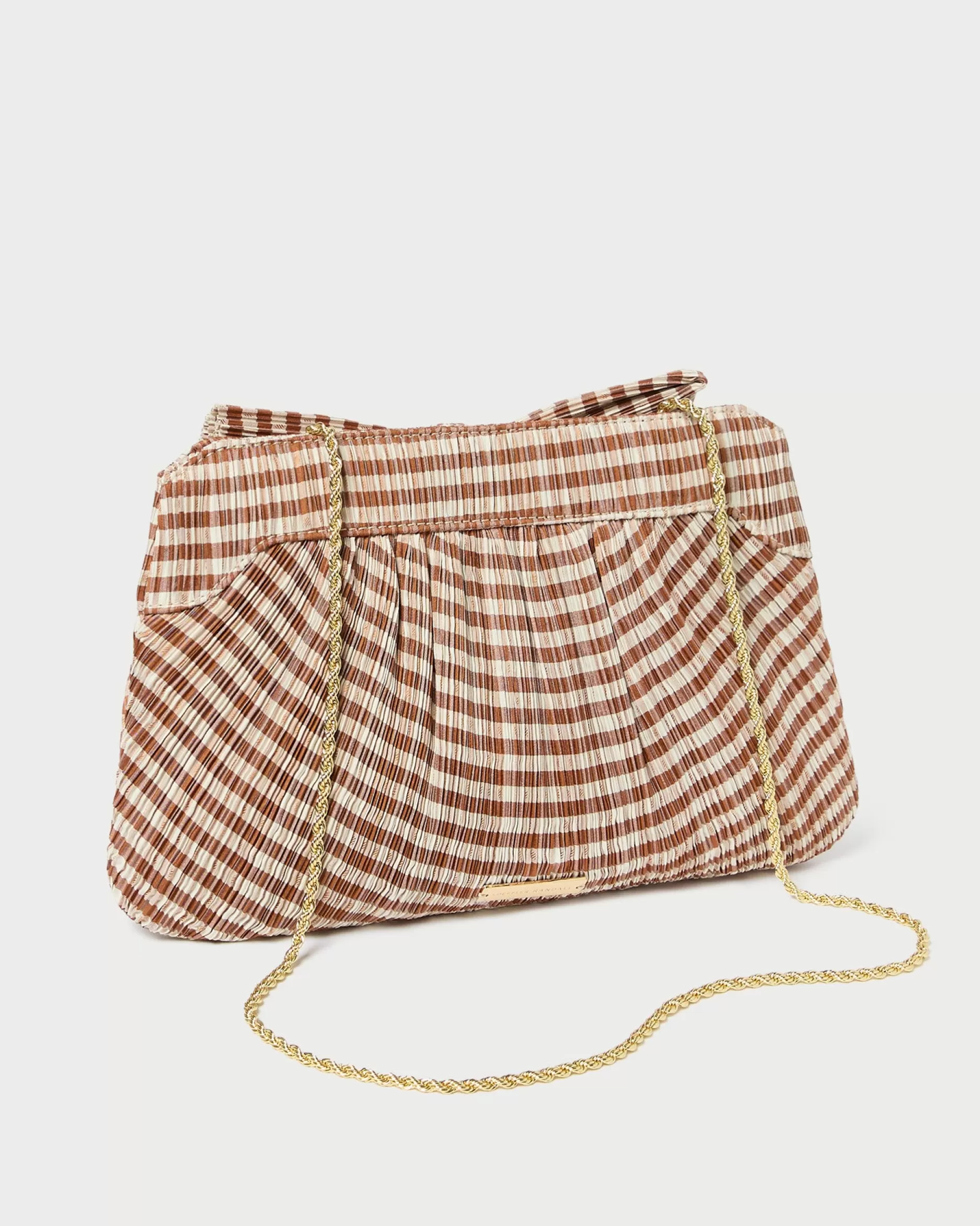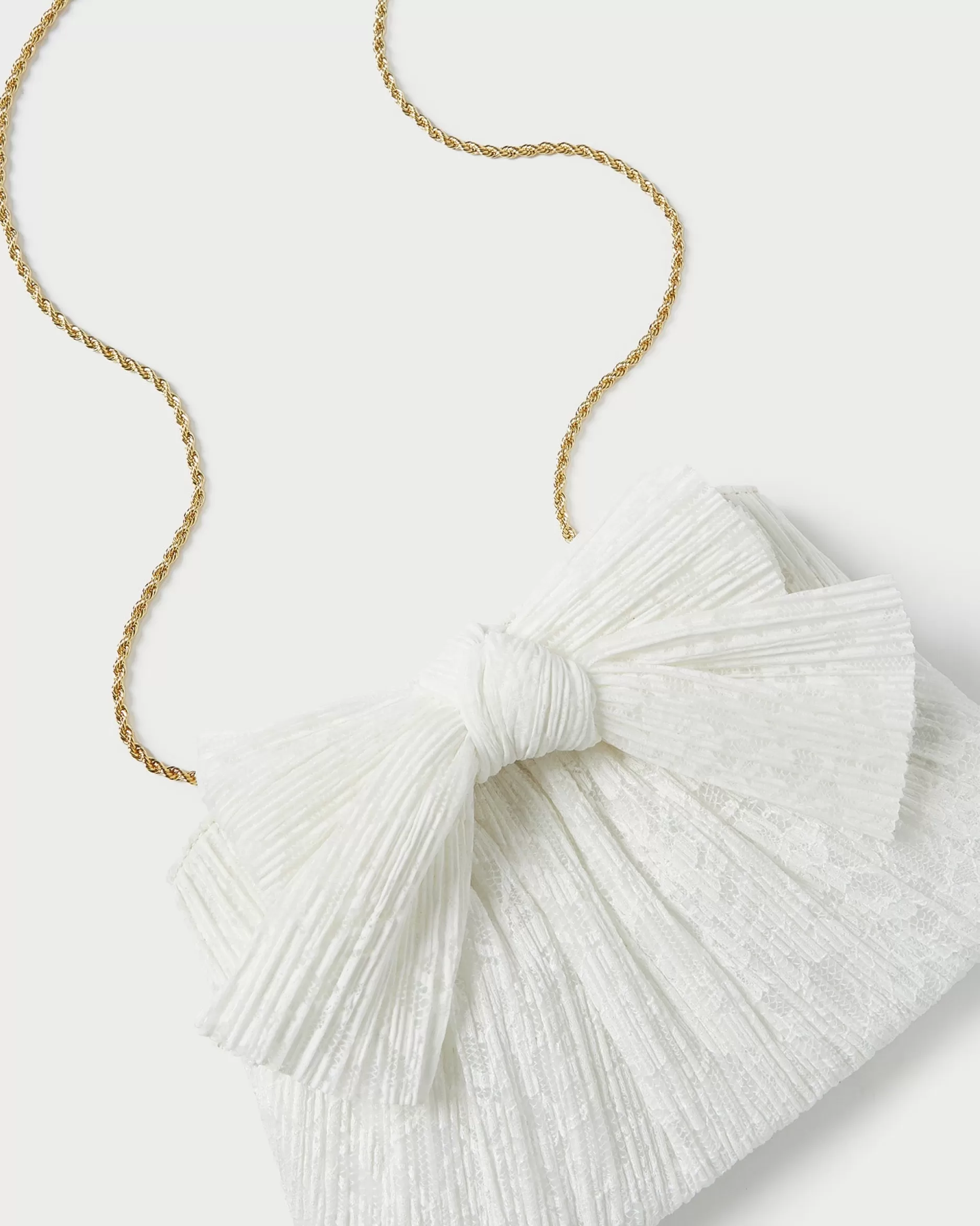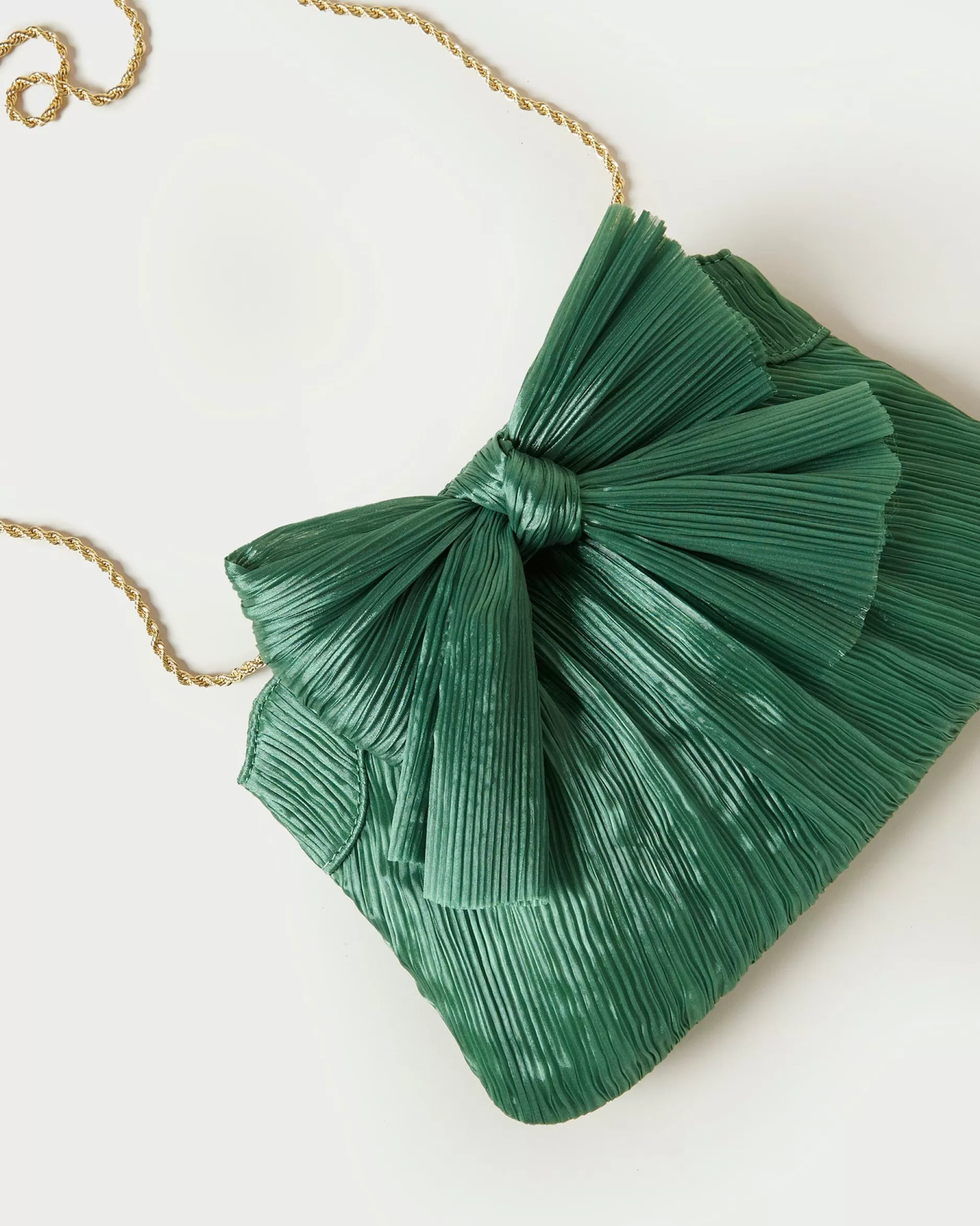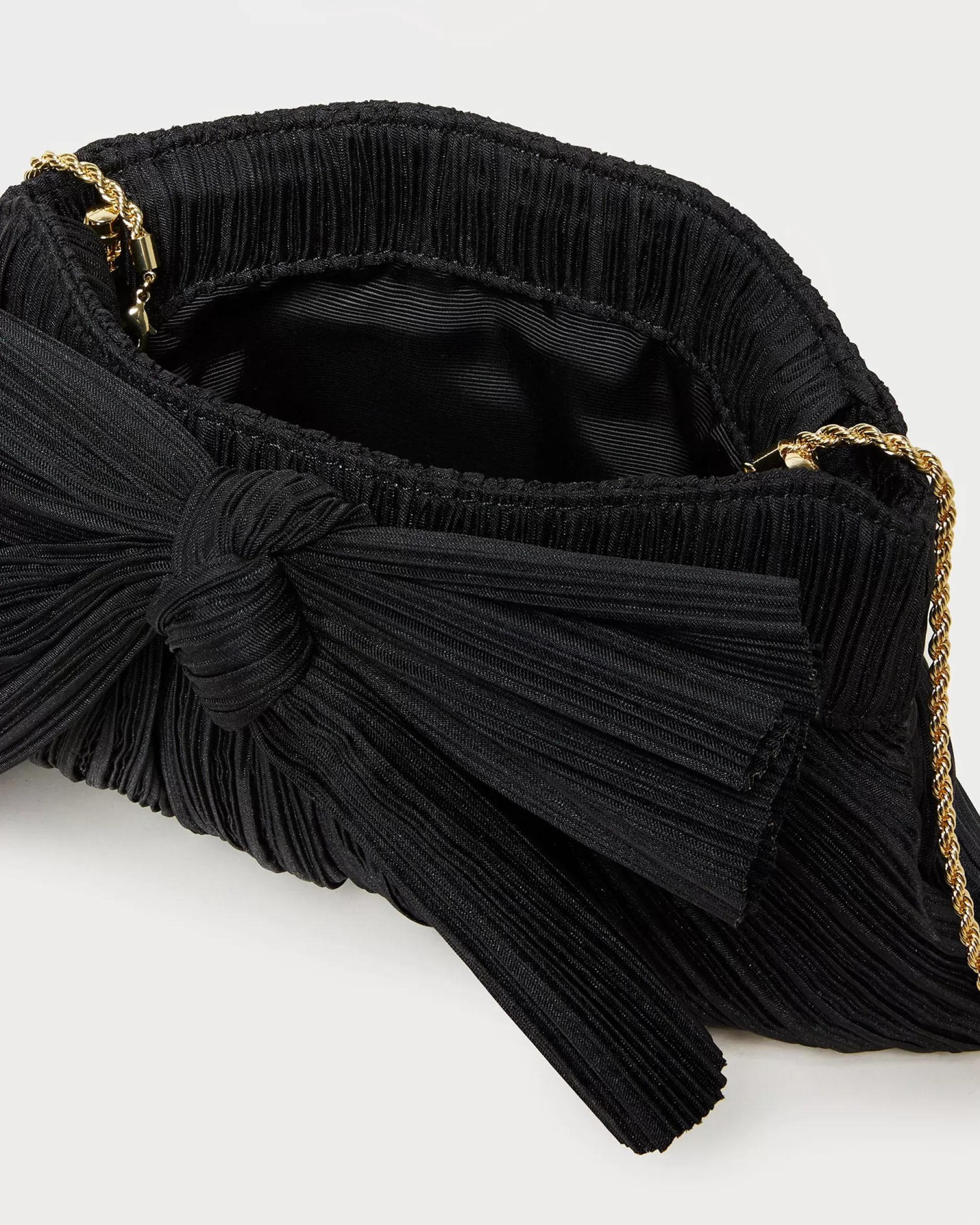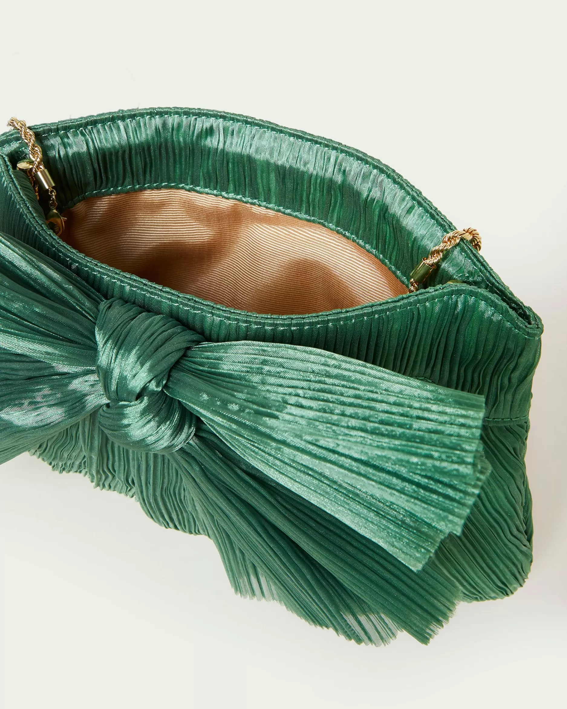 Welcome to Loeffler Randall. Discover our collection of beautiful, handcrafted styles from shoes to RTW to accessories. |Pleated frame clutch in bright white shantung topped with our signature knotted bow. Features a removable twisted gold chain crossbody strap, frame closure, full lining, and gold stamped logo.|Pleated fabric is delicate. Store out of direct sunlight and avoid abrasive materials that may snag the fabric. The edges of the bow may fray over time with friction; they can be trimmed seasonally. Pleated fabric should not be stored in tight spaces to avoid crushing the pleating.|Pleated frame clutch in black organza fabric topped with our signature knotted bow. Features a removable twisted gold chain crossbody strap, frame closure, full lining, and gold stamped logo.|Pleated fabric is delicate. Store out of direct sunlight and avoid abrasive materials that may snag the fabric. The edges of the fabric bow may fray over time with friction; they can be trimmed seasonally. Pleated fabric should not be stored in tight spaces to avoid crushing the pleating.|Pleated frame clutch in dusty blue watercolor floral topped with our signature knotted bow. Features a removable twisted gold chain crossbody strap, frame closure, full lining, and gold stamped logo.|Pleated fabric is delicate. Store out of direct sunlight and avoid abrasive materials that may snag the fabric. The edges of the bow may fray over time with friction; they can be trimmed seasonally. Pleated fabric should not be stored in tight spaces to avoid crushing the pleating.|u003cpu003ePleated frame clutch in champagne-hued Italian lamé topped with our signature knotted bow. Features a removable twisted gold chain crossbody strap, frame closure, full lining, and gold stamped logo.u003c/pu003e|Pleated fabric is delicate. Store out of direct sunlight and avoid abrasive materials that may snag the fabric. Avoid storing in tight spaces, which could crush the pleating.|Pleated frame clutch in natural straw topped with our signature knotted bow. Features a removable twisted gold chain crossbody strap, frame closure, full lining, and gold stamped logo.|We selected this material for its exceptional quality and appearance. As with most natural materials, variations in thickness and color are to be expected. Due to the delicate nature of the fiber, normal wear may occur over time. It is recommended that raffia not be exposed to water in order to maintain its appearance.|Pleated frame clutch in ivory pearl fabric topped with our signature knotted bow. Features a removable twisted gold chain crossbody strap, frame closure, full lining, and gold stamped logo.|Pleated fabric is delicate. Store out of direct sunlight and avoid abrasive materials that may snag the fabric. Edges of fabric bow may fray over time with friction; they can be trimmed seasonally. Pleated fabric should not be stored in tight spaces to avoid crushing the pleating.|Pleated frame clutch in platinum metallic lamé topped with our signature knotted bow. Features both gold and silver tones, a removable twisted gold chain crossbody strap, frame closure, full lining, and gold stamped logo.|Pleated fabric is delicate. Store out of direct sunlight and avoid abrasive materials that may snag the fabric. Edges of fabric bow may fray over time with friction; they can be trimmed seasonally. Pleated fabric should not be stored in tight spaces to avoid crushing the pleating.|Pleated frame clutch in sage green fabric topped with our signature knotted bow. Features a removable twisted gold chain crossbody strap, frame closure, full lining, and gold stamped logo. |Pleated fabric is delicate. Store out of direct sunlight and avoid abrasive materials that may snag the fabric. Edges of fabric bow may fray over time with friction; they can be trimmed seasonally. Pleated fabric should not be stored in tight spaces to avoid crushing the pleating.|Pleated frame clutch in white fabric covered with cream lace and topped with our signature knotted bow. Features a removable twisted gold chain crossbody strap, frame closure, full lining, and gold stamped logo.|Pleated fabric and lace are both delicate. Store out of direct sunlight and avoid abrasive materials and rough surfaces that may snag the materials. avoid storing in tight spaces to prevent the pleating from being crushed. Lace may fray over time with wear.|Pleated frame clutch in brown gingham fabric topped with our signature knotted bow. Features a removable twisted gold chain crossbody strap, frame closure, full lining, and gold stamped logo.|Pleated fabric is delicate. Store out of direct sunlight and avoid abrasive materials that may snag the fabric. The edges of the bow may fray over time with friction; they can be trimmed seasonally. Pleated fabric should not be stored in tight spaces to avoid crushing the pleating.|u003cpu003ePleated frame clutch with bow in gold pleated u003cspanu003elaméu003c/spanu003e. Fully lined with removable twisted gold metal chain strap.u003c/pu003e|Pleated fabric is delicate. Store out of direct sunlight and avoid abrasive materials that may snag the fabric. Edges of fabric bow may fray over time with friction; they can be trimmed seasonally. Pleated fabric should not be stored in tight spaces to avoid crushing the pleating.|Pleated frame clutch in bright white shantung topped with our signature knotted bow. Features a removable twisted gold chain crossbody strap, frame closure, full lining, and gold stamped logo.
